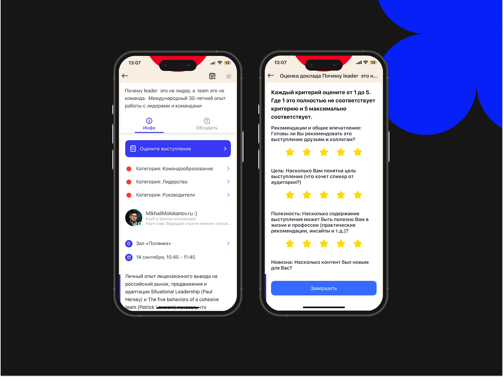 Решение: реализация разделов «Оценка спикеров» и «Оценка докладов»