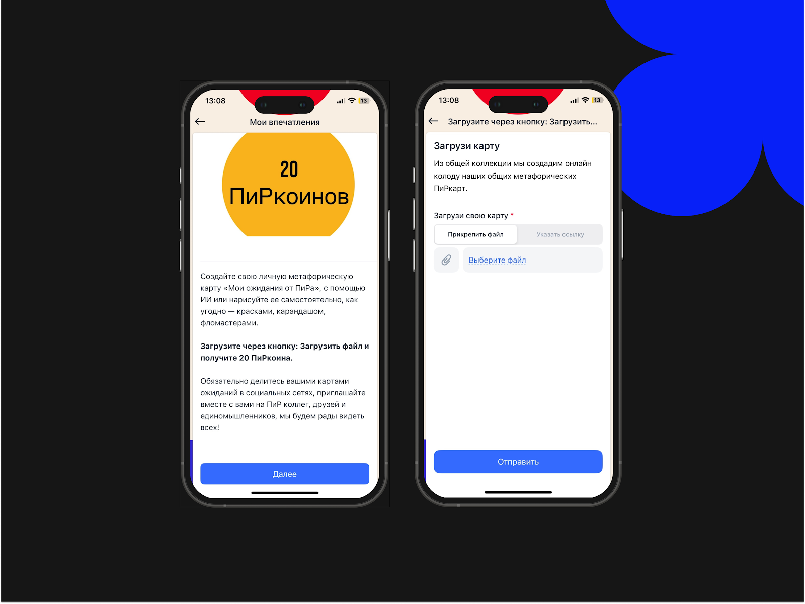 После загрузки карты через кнопку «Загрузить файл» участники получали 20 ПиРкоинов. Их также поощряли делиться картами в соцсетях и приглашать коллег, друзей и единомышленников, что расширяло сообщество и вовлечение новых участников.