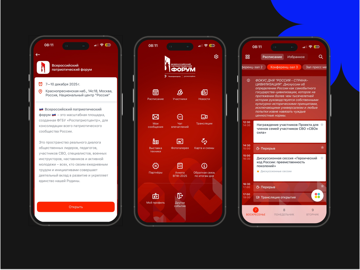 Так как у каждого дня форума был свой смысловой фокус, эта логика напрямую отражалась в цифровом расписании приложения. Участники видели, что день объединён общей темой, и все сессии внутри расписания выстраивались вокруг неё. Расписание помогало понять, о чём именно этот день и какие вопросы в центре внимания.
