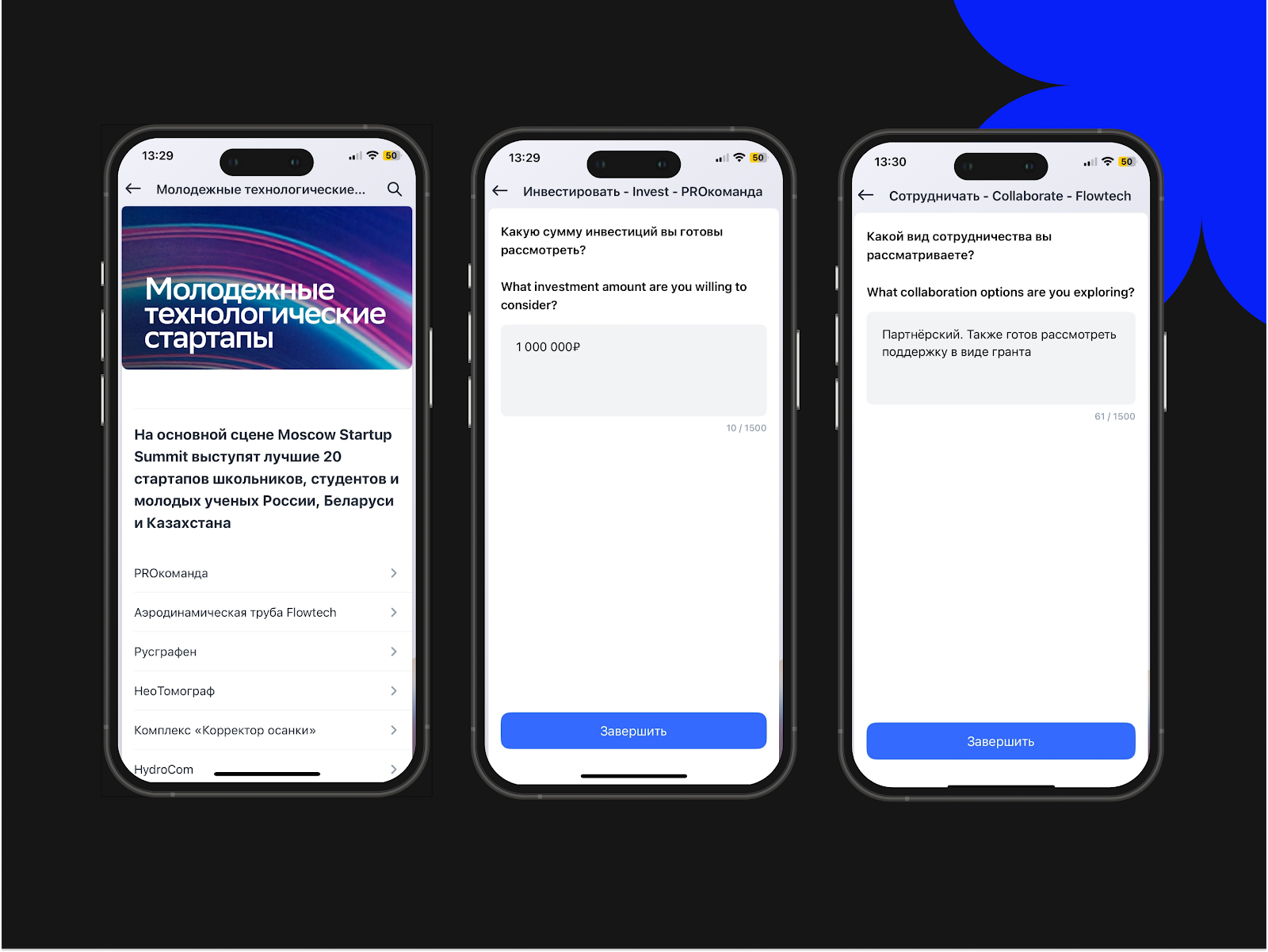 Например, стартап должен был легко найти инвестора, назначить встречу, презентовать свой продукт, провести питч и, в идеале, получить инвестиционное предложение. Со стороны инвесторов задача была ровно такая же — увидеть релевантные проекты, выбрать интересные и зафиксировать предложения. Именно сбор и фиксация инвестиционных интересов стали одной из ключевых метрик эффективности саммита.